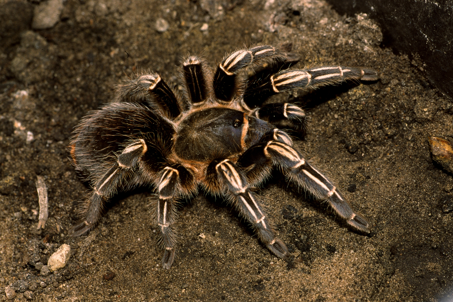 Skorpione gehören zu den Spinnentieren. Wie die Spinnen haben auch Skorpione keine Ohren und nur ganz schlechte Augen. Sie erspüren Geräusche und selbst die kleinste Bewegung in ihrer Umgebung mit Hilfe ihrer Scheren, an denen ganz feine lange Tasthaare sitzen. Beim Laufen halten Skorpione ihre Scheren immer vor sich. Auf diese Weise können sie sich ihre Umgebung ertasten. So bemerken sie feinste Erschütterungen und Luftbewegungen, wie sie durch Geräusche verursacht werden. Skorpione haben also keine Ohren, „hören“ aber mit ihren Scheren.