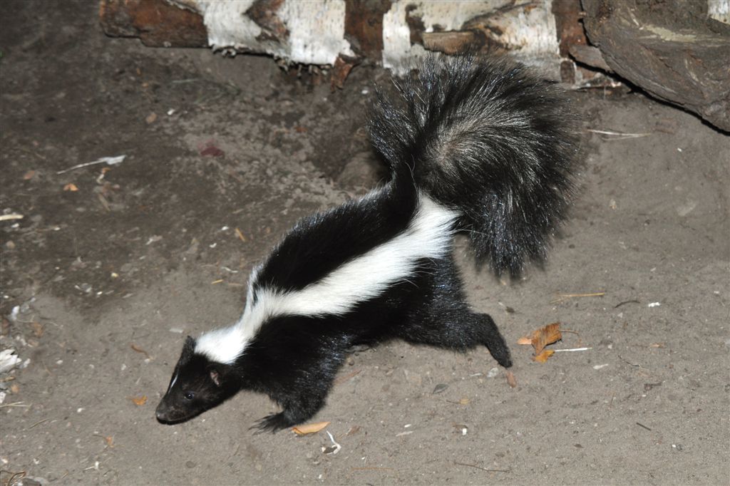 Ein Stinktier (Skunk) stinkt selbst nicht. Als Abwehrwaffe verwendet das Stinktier eine Flüssigkeit, die es aus Afterdrüsen ausstößt, die stark unangenehm riecht. Das Aufstellen des Schwanzes ist ein Warnsignal. Ein Skunk kann sein Sekret 2 bis 6 Meter weit spritzen.